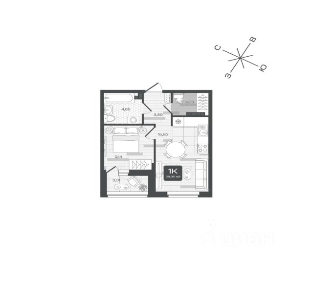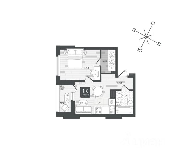 Продажа 1-комнатных квартир на 2 этаже в деревне Дербыши Тюменского района