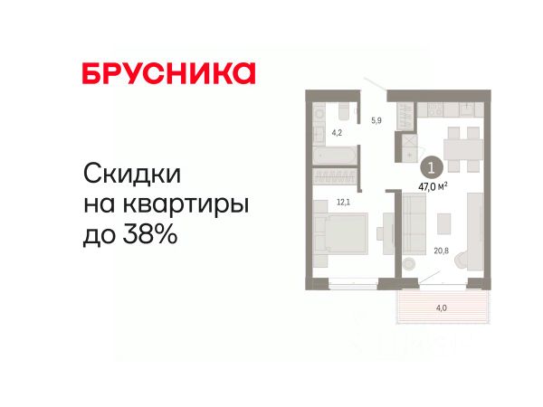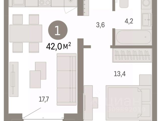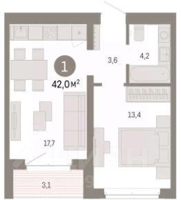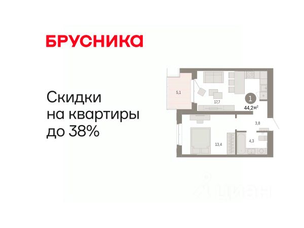 Квартира в счёт первоначального взноса по программе обмена. Звоните, наши менеджеры вам все расскажут! 1-комн. квартира от застройщика с предчистовой отделкой в Кварталы "На Минской" на 4 этаже. Общая площадь: 42.38 кв.м., жилая: 13.4 кв.м., площадь просторной кухни-гостиной: 17.7 кв.м. Все окна выходят на одну сторону. В квартире одна лоджия, один совмещенный санузел. Высота потолков 2.7 м. Дом монолитный, многоподъездный, переменной этажности, от 7 до 11 этажей. Квартира находится во 2-й секции высотой 7 этажей в корпусе 2. На этаже 7 квартир. В подъезде 1 пассажирский и 1 грузовой лифт. Окончание строительства - 1 квартал 2027 года. Оформление сделки по договору долевого участия. Квартира с кухней-гостиной и одной спальней в кварталах "На Минской". Особенности планировки: вид во двор, лоджия, предчистовая отделка. квартиры в нашей базе: МНС02-Ж2.4.3. В сердце города Кварталы "На Минской" находятся в самом центре. За десять минут можно дойти до площади 400-летия Тюмени и Большого Драматического театра, Тюменского индустриального и медицинского университетов, спортивного комплекса "Строймаш", ТРЦ "Гудвин" и "Премьер", Тюменского технопарка. Поблизости много детских садов, школ и поликлиник. Пространство разного опыта Создавая кварталы "На Минской" мы вдохновлялись Хакскими дворами в Берлине и улицей Давида Агмашенебели в Тбилиси. И первые и вторая — яркие разнообразные пространства, сформированные прогрессивными архитекторами и притягивающие городских интеллектуалов. Престижная недвижимость здесь соседствует с барами, ресторанами, креативными кластерами и бюро, дизайнерскими лавками. Полезные улицы Кварталы "На Минской" свяжет сеть променадов, автомобильных проездов и велодорожек. Уличный фронт проекта мы сформируем с помощью аллейной посадки деревьев. Они создадут тень для ресторанов и кафе на первых этажах, визуально отделят проезжую и пешеходную части, снизят объём пыли и уровень шума. Мы реализуем проект в районе с развитой базовой инфраструктурой. И поэтому тщательно подошли к программированию коммерции, посчитав, что её основная задача — "закрывать" более высокие потребности жителей. Здесь может появиться пекарня с вкусными круассанами, турагентство на случай, если захочется перезимовать в Сочи, массажный кабинет, ресторан, когда надоело есть дома и многое другое. #ZS2AW3