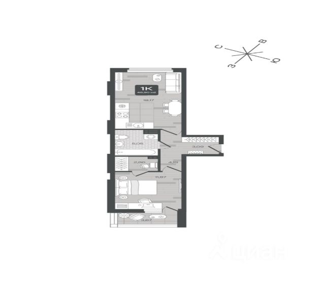 Продаётся квартира площадью 50.78 м2 в жилом комплексе "Дабл-Дабл". Квартира находится на 4 этаже дома, который будет введен в эксплуатацию во 2 квартале 2028 года. Жилая площадь квартиры 14.96 м2, площадь просторной кухни — 14.69 м2. Среди особенностей планировки — изолированные комнаты с окнами на одну сторону, 1 совмещённый санузел. Жилой комплекс "Дабл-Дабл" — это: проект комфорт-класса на Московском тракте дома высотой 15 этажей квартиры от 1-комнатных до 2-уровневых 1 очередь — срок сдачи IV кв. 2025 2 очередь — срок сдачи III кв. 2028 Окружение На границе жилого комплекса — живописный лес. Достаточно открыть окна, чтобы впустить в комнаты ароматы зелени, прохладу и чистый воздух. Благоустройство Юные жители оценят игровые площадки и воркаут-зоны. Любителям неспешных прогулок понравится 2-уровневый променад с панорамным видом и навесами. Лобби Помещения встречают дизайнерскими интерьерами с уютными лаунж-зонами, где удобно подождать курьера или просто сделать паузу перед возвращением домой. Колясочные Возвращайтесь налегке после прогулки с малышом — оставить коляску можно в специальном помещении на первом этаже. Кладовые Благодаря индивидуальным помещениям на техническом этаже сезонные и габаритные вещи будут на своём месте. 2-уровневые квартиры Просторная гостиная и кухня располагаются на первом этаже, спальня и кабинет — на втором. Почувствуйте, как жизнь выходит на новый уровень комфорта и приватности. Панорамное остекление Окна в пол наполняют комнаты светом и стирают границы между домом и природой. Встречайте рассветы или наслаждайтесь огнями вечернего города. Отделка Ровные стены, подготовленные полы и проведённые коммуникации — мы взяли на себя самые грязные и трудоёмкие этапы ремонта. Квартира станет чистым холстом, где легко создать интерьер в любом стиле.
