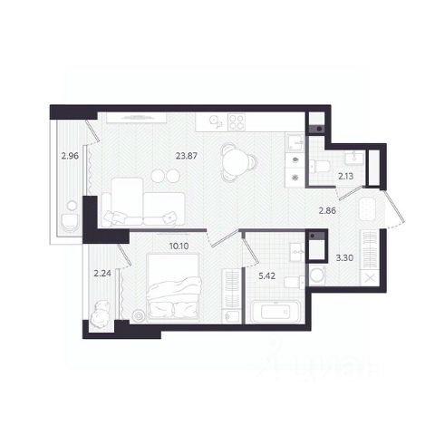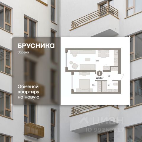 Однокомнатная квартира с предчистовой отделкой в ЖК "Республики 205" на 4 этаже. Общая площадь: 45.89 кв.м., жилая: 12.1 кв.м., площадь просторной кухни-гостиной: 20.8 кв.м. Все окна выходят на одну сторону. В квартире один балкон, один совмещенный санузел. Высота потолков 2.7 м. Купить квартиру можно с помощью программ покупки от застройщика Брусника: - ипотека по эксклюзивной ставке с помощью в получении положительного кредитного решения через сервис ипотечный брокер; - квартиры в рассрочку без процентов от застройщика Брусника; - обмен квартиры на новую. Получить одобрение ипотеки или рассрочку, а также осуществить обмен квартир можно онлайн. Дом монолитный, многоподъездный, переменной этажности, от 7 до 25 этажей. Квартира находится в 3-й секции высотой 9 этажей в корпусе 3-1. На этаже 6 квартир. В подъезде 1 пассажирский и 1 грузовой лифт. Окончание строительства - 1 квартал 2027 года. Оформление сделки по договору долевого участия. Район Проект расположен в границах улиц Пермякова, Энергетиков, Воровского и Республики. До центра города — 10 минут на машине. Рядом — автомобильная развязка на пересечении улиц Пермякова и Республики. В шаговой доступности есть школы, детские сады, поликлиники, крупный торговый центр, автовокзал и несколько скверов. Проект "Республики 205" — это проект комплексного развития территории, уникальный по своему наполнению. Переосмысляя бывшую территорию завода медицинского оборудования, мы создадим новое место силы — микрорайон, насыщенный деловой, развлекательной, рекреационной, игровой, образовательной и медицинской инфраструктурой. До каждого полезного сервиса здесь можно будет дойти за 15 минут. Локальными центрами "Республики 205" будут общественные пространства — скверы, парки, бульвары и площади. В границах нашего участка мы намерены разместить школу, рассчитанную на 1550 учеников, два детских сада на 300 мест и встроенный детский сад на 100 мест. В одном из цехов бывшего завода расположится креативный кластер "Кузница". Он станет площадкой для нескольких институций — галереи, лектория, книжного магазина-библиотеки, кинобара и точек креативного pop-up-ритейла. Пешеходные бульвары внутри района соединят между собой улицу ресторанов, детские и спортивные площадки, событийную площадь и летний кинотеатр. Идентификатор квартиры по базе застройщика: РСП03. #z6DVtb Продается 1-комнатная квартира на 4 этаже в Тюменской области.