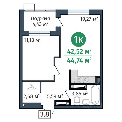 Продаётся 1-комнатная квартира в строящемся доме (Дом Тенерифе (ГП-2Я)), срок сдачи: IV-кв. 2027, общей площадью 33.8 кв.м., на 5 этаже. Новый жилой комплекс "Остров-сад" от Специализированного застройщика "Страна. Коммунистическая" расположен по адресу: г. Тюмень, по ул. Ярославская.