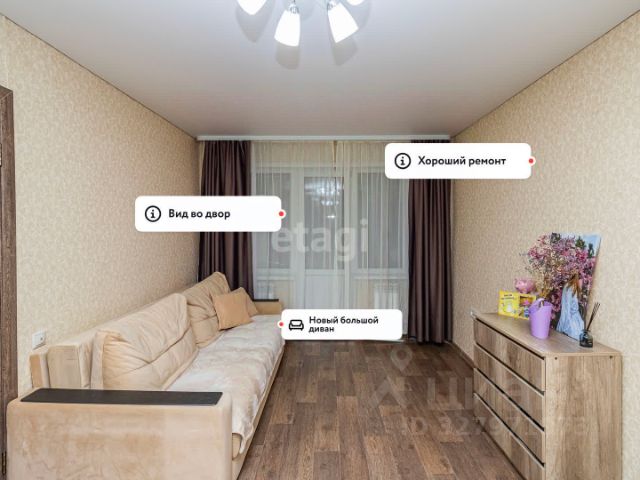 Сделан современный ремонт с использованием качественных материалов. После ремонта ни кто не проживал. Заменена электропроводка по всей квартире. Пол выровнен, залита новая стяжка, ламинат уложен единым контуром. Натяжной потолок с точечным освещением. Санузел в плитке, установлена новая сантехника. Окна пластиковые. Балкон остеклен.