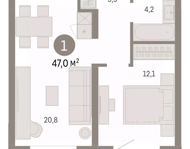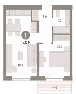 Продается однокомнатная квартира от застройщика с предчистовой отделкой в ЖК "Республики 205" на 5 этаже. Общая площадь: 48.88 кв.м., жилая: 12.1 кв.м., площадь просторной кухни-гостиной: 20.8 кв.м. Все окна выходят на одну сторону. В квартире один балкон, один совмещенный санузел. Высота потолков 2.7 м.