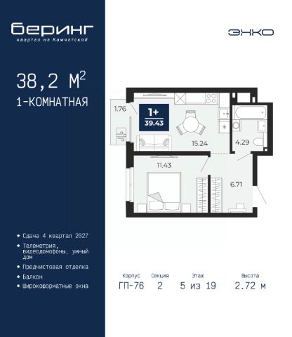 Успейте забронировать на этих условиях! Период предложения ограничен! Стоимость квартиры указана со скидкой, ваша экономия составит 340,508 RUB. По всем вопросам звоните в офис продаж, наши менеджеры вам все расскажут! 1-комн. квартира от застройщика с предчистовой отделкой в ЖК "Мириады" на 5 этаже. Общая площадь: 44.4 кв.м., жилая: 15.2 кв.м., площадь просторной кухни-столовой: 17.6 кв.м. Все окна выходят на одну сторону. В квартире один балкон, один совмещенный санузел. Высота потолков 2.7 м. Дом монолитный, многоподъездный, переменной этажности, от 14 до 16 этажей. Квартира находится в 1-й секции высотой 16 этажей в корпусе ГП-72.102. На этаже 9 квартир. В подъезде 1 пассажирский и 1 грузовой лифт. В настоящее время строительство окончено, дом сдан в 4 квартале 2025 года. Оформление сделки по договору купли-продажи. Вселенная бесконечных историй. Ранее невиданный Тюмени масштаб: территория 240 гектаров и 1 650 000 м² застройки. Мириады это город масштабных перемен и больших возможностей. Город зеленых рощ и зеркальных озер. Город для работы, учебы и развлечений. Город для детей и их родителей. Город для всех и каждого. Проект расположен в районе Мыс рядом с ТРЦ "Тюмень Сити Молл" в границах улицы Тимофея Чаркова, Тобольского тракта и объездной дороги. Срок полного освоения территории - до 2034 года. #Z6Veaf