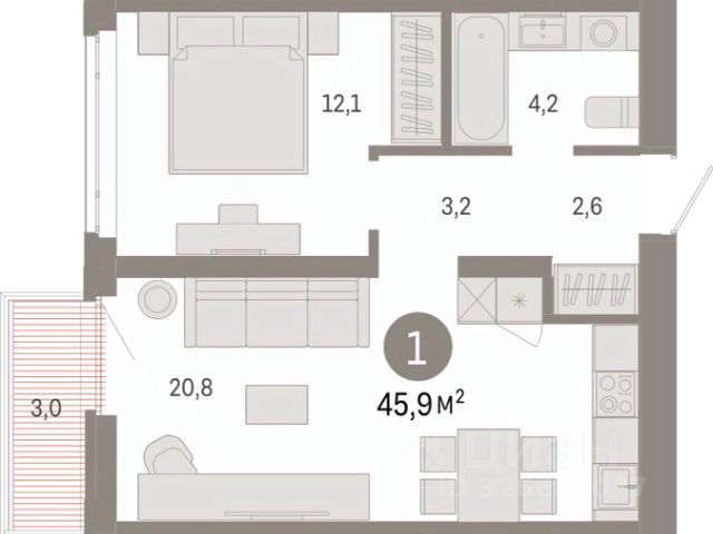 Успейте оформить бронирование по этой цене! Предложение ограничено! Стоимость квартиры указана со скидкой, ваша экономия составит 337,940 RUB. Звоните, мы вам все подробно расскажем! Однокомнатная квартира с предчистовой отделкой в ЖК "Мириады" на 5 этаже. Общая площадь: 39.4 кв.м., жилая: 10.7 кв.м., площадь просторной кухни-столовой: 17.5 кв.м. Все окна выходят на одну сторону. В квартире одна лоджия, один совмещенный санузел. Высота потолков 2.7 м. Квартира находится в корпусе ГП-72.101. Дом монолитный, одноподъездный, высотой 25 этажей. На этаже 8 квартир. В подъезде 2 пассажирских и 1 грузовой лифт. На сегодняшний день строительство завершено, дом сдан в 4 квартале 2025 года. Оформление сделки по договору купли-продажи. Вселенная бесконечных историй. Ранее невиданный Тюмени масштаб: территория 240 гектаров и 1 650 000 м² застройки. Мириады это город масштабных перемен и больших возможностей. Город зеленых рощ и зеркальных озер. Город для работы, учебы и развлечений. Город для детей и их родителей. Город для всех и каждого. Проект расположен в районе Мыс рядом с ТРЦ "Тюмень Сити Молл" в границах улицы Тимофея Чаркова, Тобольского тракта и объездной дороги. Срок полного освоения территории - до 2034 года. #z6TddC