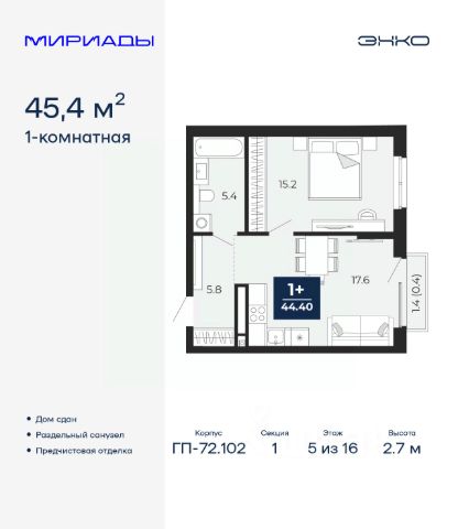 Дом 1 представляет собой замкнутый квартал переменной высотности. В нём 617 квартир от 21 до 127 кв. метров.
