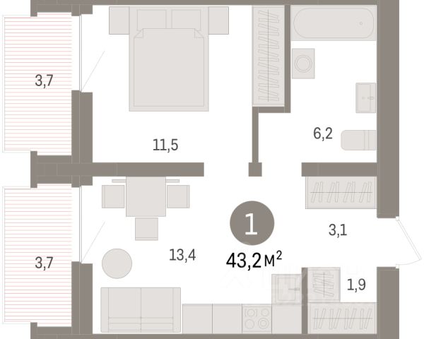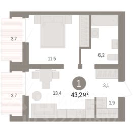 1-комн. квартира с предчистовой отделкой в ЖК "Мотивы" на 5 этаже. Общая площадь: 40.8 кв.м., жилая: 13.62 кв.м., площадь просторной кухни-столовой: 15.87 кв.м. Все окна выходят на одну сторону. В квартире одна лоджия, один совмещенный санузел. Высота потолков 2.7 м.