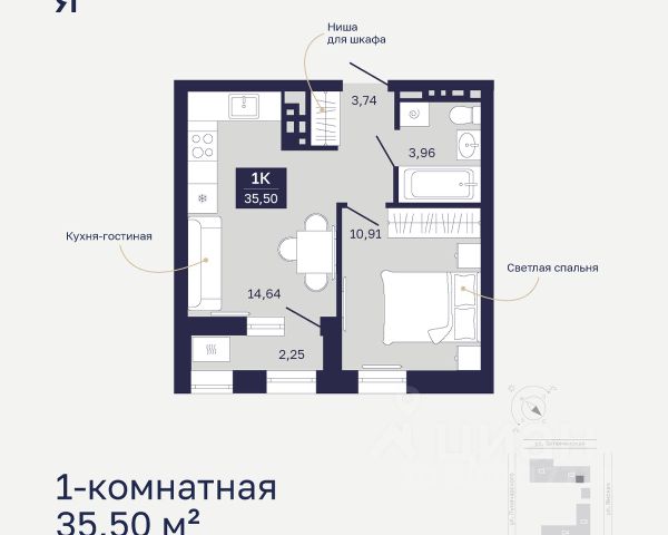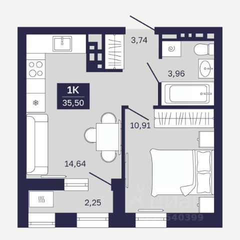 Хорошая квадратура 36,4 м2 (данные ЕГРН, такая площадь указана в документах)