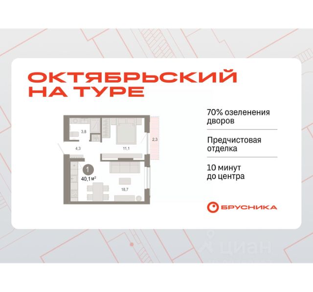 Квартира в счёт первоначального взноса по программе обмена. Квартира с кухней-гостиной и одной спальней в Октябрьском на Туре. Особенности планировки: вид во двор, предчистовая отделка, балкон. квартиры в нашей базе: ОКТ09-Ж4.6.8. Район Проект расположен на берегу реки, в одном из самых живописных и экологичных районов Тюмени. За последние годы облик района изменился. По соседству с индивидуальной застройкой выросли многоквартирные дома. При проектировании "Октябрьского на Туре" нашей приоритетной задачей стало сохранение природного ландшафта: мы постарались деликатно вписать в него современную архитектуру. Квартал удачно расположен с точки зрения дорожной инфраструктуры. На автомобиле путь до центра города составит 15 минут. Добраться до набережной и главных тюменских достопримечательностей можно и на общественном транспорте. В пешей доступности находится автобусная остановка. Проект По мастер-плану здесь будет восемь домов. Ядро застройки составляют замкнутые кварталы переменной этажности. Их высотность понижается по мере приближения к реке. На углах участка мы разместили башни-доминанты. Одной из достопримечательностей квартала станет парк на Туре — здесь появится зеленая зона протяженностью около 6 километров для пеших и велопрогулок. Смысловая ось квартала — широкая главная улица с высаженными вдоль неё высокими деревьями. Они создают тень и работают как шумо- и пылезащитные экраны. Это место сосредоточения основных пешеходных и транспортных потоков, на сторону которых мы ориентировали большинство коммерческих помещений. Отсюда жители могут свернуть на тихие соседские улицы и попасть на внутриквартальную площадь — ещё одну точку притяжения.Квартира в счёт первоначального взноса по программе обмена. #25IoID