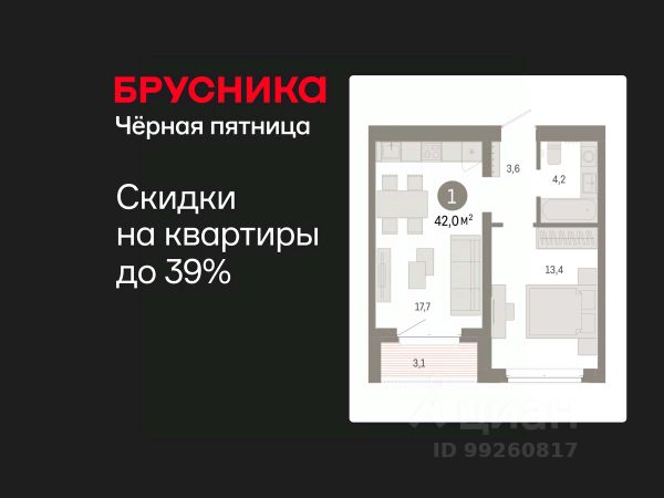 Квартира в счёт первоначального взноса по программе обмена. По всем вопросам звоните в офис продаж, мы вам все подробно расскажем! Продается однокомнатная квартира от застройщика с предчистовой отделкой в Кварталы "На Минской" на 6 этаже. Общая площадь: 42.29 кв.м., жилая: 8.3 кв.м., площадь просторной кухни-гостиной: 21.5 кв.м. Все окна выходят на одну сторону. В квартире одна лоджия, один совмещенный санузел. Высота потолков 2.7 м. Дом монолитный, многоподъездный, переменной этажности, от 7 до 16 этажей. Квартира находится в 4-й секции высотой 7 этажей в корпусе 1. На этаже 5 квартир. В подъезде 1 грузовой лифт. Окончание строительства - 4 квартал 2026 года. Оформление сделки по договору долевого участия. Квартира с кухней-гостиной и одной спальней в кварталах "На Минской". Особенности планировки: лоджия, предчистовая отделка. квартиры в нашей базе: МНС01-Ж4.6.2. В сердце города Кварталы "На Минской" находятся в самом центре. За десять минут можно дойти до площади 400-летия Тюмени и Большого Драматического театра, Тюменского индустриального и медицинского университетов, спортивного комплекса "Строймаш", ТРЦ "Гудвин" и "Премьер", Тюменского технопарка. Поблизости много детских садов, школ и поликлиник. Пространство разного опыта Создавая кварталы "На Минской" мы вдохновлялись Хакскими дворами в Берлине и улицей Давида Агмашенебели в Тбилиси. И первые и вторая — яркие разнообразные пространства, сформированные прогрессивными архитекторами и притягивающие городских интеллектуалов. Престижная недвижимость здесь соседствует с барами, ресторанами, креативными кластерами и бюро, дизайнерскими лавками. Полезные улицы Кварталы "На Минской" свяжет сеть променадов, автомобильных проездов и велодорожек. Уличный фронт проекта мы сформируем с помощью аллейной посадки деревьев. Они создадут тень для ресторанов и кафе на первых этажах, визуально отделят проезжую и пешеходную части, снизят объём пыли и уровень шума. Мы реализуем проект в районе с развитой базовой инфраструктурой. И поэтому тщательно подошли к программированию коммерции, посчитав, что её основная задача — "закрывать" более высокие потребности жителей. Здесь может появиться пекарня с вкусными круассанами, турагентство на случай, если захочется перезимовать в Сочи, массажный кабинет, ресторан, когда надоело есть дома и многое другое. #zW99CM