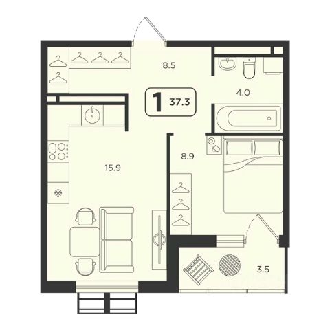 Продаётся 1-комнатная квартира в строящемся доме (ГП-2, секции 1, 2), срок сдачи: I-кв. 2027, общей площадью 34.3 кв.м., на 6 этаже. ЖК "Симфония" - новый проект комфорт-класса в центре Тюмени, будет расположен в пределах улиц Харьковская - Холодильная - Мельникайте."Симфония" - это комплекс из 6 домов переменной этажности в монолитно-каркасном исполнении, отделка фасадов выполнена с применением клинкерного кирпича и по технологии "мокрый фасад", что придает домам стильный и современный вид. Украшением района станет архитектурная концепция и подсветка домов ЖК "Симфония".Охраняемая закрытая территория комплекса с круглосуточным видеонаблюдением, двор без машин, все дома объединены пешеходным бульваром, на 1 этаже предусмотрена торговая галерея, детские площадки с многоуровневыми игровыми комплексами, воркаут зоной с безопасным прорезиненным покрытием.Бесплатный Wi-Fi во дворе, удобный вход в подъезды для маломобильных граждан и мам с колясками, колясочные, лапомойка для домашних питомцев, дизайнерские холлы подъездов, кладовые в подземном паркинге - все это будет реализовано в новом ЖК.Все квартиры с кухнями-гостиными, гардеробными, для любителей проводить время на свежем воздухе - квартиры с террасами.