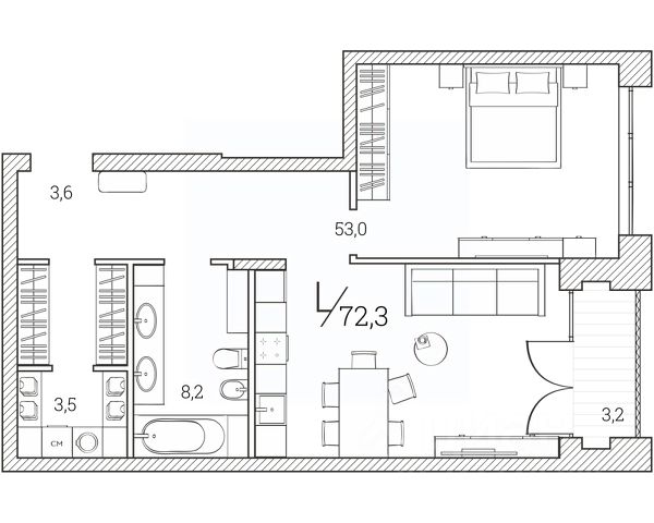 Квартира в счёт первоначального взноса по программе обмена. По всем вопросам звоните в офис продаж, мы вам все подробно расскажем! Продаются 1-комн. апартаменты от застройщика в ЖК "1А Первомайская" на 6 этаже. Апартаменты без отделки, полностью готова к чистовой отделке и дальнейшему ремонту. Общая площадь: 72.3 кв.м., жилая: 19.9 кв.м., площадь просторной кухни-гостиной: 22.4 кв.м. Все окна выходят на одну сторону. В апартаментах одна лоджия, один совмещенный санузел. Высота потолков 2.7 м. Дом монолитный, двухподъездный, высотой 11 этажей. Апартаменты находятся в 1-й секции в корпусе 2. На этаже 4 квартиры. В подъезде 2 пассажирских лифта. На сегодняшний день строительство окончено, дом сдан во 2 квартале 2021 года. Оформление сделки по договору купли-продажи. "1А Первомайская" — новый проект Брусники в самом центре Тюмени на пересечении главных улиц: Первомайской, Советской и Сакко. Квартал состоит из двух зданий с жилыми апартаментами и офисной галереи, которые связаны единым общественным пространством.. Всего в квартале расположено 70 квартир. Гибкие планировки создают особенный сценарий проживания в каждой из них. Можно спланировать пространство так, как хочется. Площадь квартиры позволяет расширить традиционный набор функций — кухня, спальня, гостиная, и разместить до 20 видов помещений, например, мастер-спальня, ванная-спа, домашний офис, кухня-столовая с камином, комната для чтения и другие.. Твой личный центр Центр города — это всегда сложное комплексное явление, соединяющее экономическое, культурное, историческое, социальное и психологическое пространства. Центр — место, с которым в первую очередь ассоциируется город. Это его квинтэссенция. Здесь сосредоточены знаковая архитектура, смыслы, деловая и творческая энергия. Здесь находятся лучшие магазины, театры, парки, школы, музеи, офисы крупных компаний и знаковые девелоперские проекты, становящиеся новым и городскими ориентирами. Быть в центре — естественное желание современного человека. "1А Первомайская" — классический способ это желание реализовать. Новая городская архитектура "1А Первомайская" — ансамбль из двух жилых зданий и офисной галереи. Под ними — двухуровневый паркинг для резидентов, сотрудников офисов и гостей. Мы хотели создать проект, который бы органично встроился в окружение и соответствовал запросам горожан к центру. Поэтому утвердили сомасштабную человеку высоту в 7-9 этажей и спреоктировали внутри квартала пешеходную аллея, которая связывает дома с контекстом и делает квартал проницаемой. В качестве основного материала фасадах зданий мы выбрали натуральный камень лабрадорит. Он выглядит благородно и сдержанно. Эстетику проекта дополняет регулярная, правильная сетка окон. Такая архитектура вне времени. #ZMSwgg