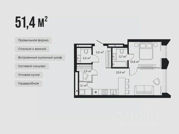 Площадь: 44 м²