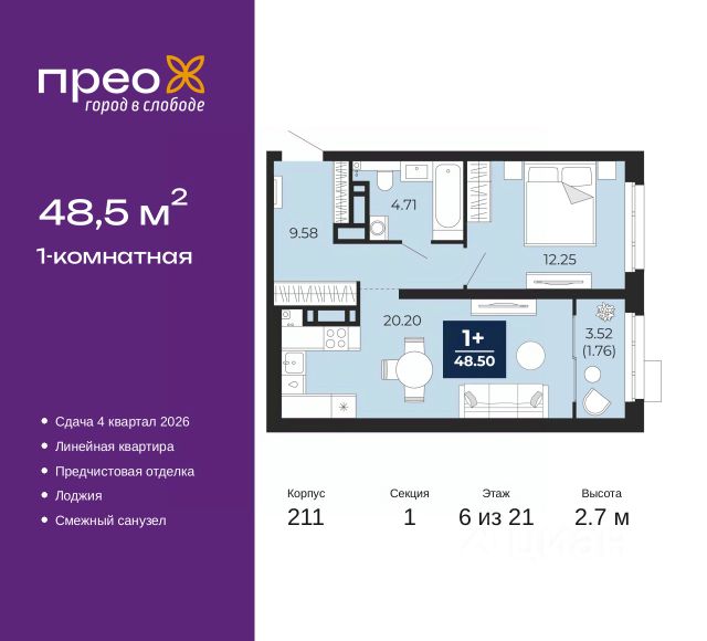 Продаётся квартира площадью 36.3 м2 в жилом комплексе "Айрис". Квартира находится на 6 этаже, жилая площадь квартиры 9.7 м2, площадь просторной кухни — 17.6 м2. Среди особенностей планировки — изолированные комнаты с окнами на одну сторону, 1 совмещённый санузел. Срок сдачи — III кв. 2027 Жилой комплекс "Айрис" — это: - фиджитал-квартал в Тюмени - дома высотой от 7 до 25 этажей - квартиры с системой "Умный дом" - цифровые технологии как элемент благоустройства Окружение В нескольких минутах ходьбы от дома — парк "Комарово" с волейбольной площадкой, открытым кинотеатром, зонами для барбекю и катком. Неподалеку от Airis находится центр иппотерапии, где можно покататься на лошадях и взять уроки верховой езды. На территории Airis появится собственный парк с прогулочными аллеями. Инфраструктура В 5-10 минутах от квартала открыты 2 детских сада и гимназия. На шопинг можно отправиться в торговые комплексы "Колумб" и "Кристалл" — они находятся недалеко от дома. Благоустройство Уютный двор — приватное пространство для жителей. В беседках можно будет почитать книгу в тишине, а в тени деревьев устроиться на пикник. На крыше многоуровневого паркинга будет лаунж-зона с кинотеатром, баскетбольная площадка и воркаут-пространство, где можно позаниматься с виртуальным тренером — достаточно отсканировать код. Лобби Интерьеры лобби выполнены в пастельных тонах с элементами фиджитал-решений. Для отдыха и ожидания гостей создана лаунж-зона. Также есть гостевые санузлы. Колясочные Возвращайтесь налегке после прогулки с малышом — оставить коляску можно в специальном помещении на первом этаже. Кладовые Для сезонных и габаритных вещей предусмотрены отдельные кладовые на цокольном этаже. В каждом помещении уже проведено электричество и выполнена стяжка пола. Паркинг На территории — два многоуровневых наземных паркинга. Один из них примыкает к домам — из него можно напрямую пройти в парадные. Планировки Планировки квартала — от компактной студии до сити-хауса с собственным палисадником — соответствуют любым жизненным сценариям. Можно выбрать квартиры с террасами и готовыми дизайнерскими интерьерами.