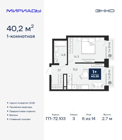 Продается однокомнатная квартира от застройщика с предчистовой отделкой в ЖК "Мириады" на 6 этаже. Общая площадь: 47.8 кв.м., жилая: 12.1 кв.м., площадь просторной кухни-столовой: 27.1 кв.м. Все окна выходят на одну сторону. В квартире один балкон, один совмещенный санузел. Высота потолков 2.7 м. Дом монолитный, многоподъездный, переменной этажности, от 14 до 16 этажей. Квартира находится в 1-й секции высотой 16 этажей в корпусе ГП-72.102. На этаже 9 квартир. В подъезде 1 пассажирский и 1 грузовой лифт. Окончание строительства - 4 квартал 2025 года. Оформление сделки по договору долевого участия. Вселенная бесконечных историй. Ранее невиданный Тюмени масштаб: территория 240 гектаров и 1 650 000 м² застройки. Мириады это город масштабных перемен и больших возможностей. Город зеленых рощ и зеркальных озер. Город для работы, учебы и развлечений. Город для детей и их родителей. Город для всех и каждого. Проект расположен в районе Мыс рядом с ТРЦ "Тюмень Сити Молл" в границах улицы Тимофея Чаркова, Тобольского тракта и объездной дороги. Срок полного освоения территории - до 2034 года. #Z6bwMW