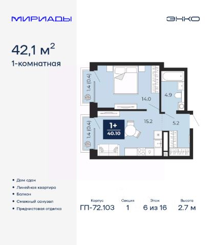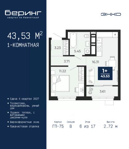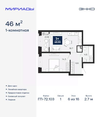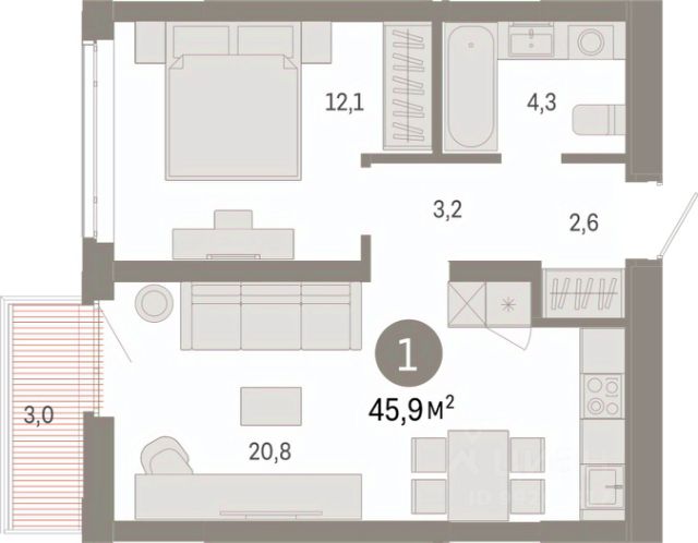 Однокомнатная квартира с предчистовой отделкой в ЖК "Республики 205" на 6 этаже. Общая площадь: 45.89 кв.м., жилая: 12.1 кв.м., площадь просторной кухни-гостиной: 20.8 кв.м. Все окна выходят на одну сторону. В квартире один балкон, один совмещенный санузел. Высота потолков 2.7 м. Купить квартиру можно с помощью программ покупки от застройщика Брусника: - ипотека по эксклюзивной ставке с помощью в получении положительного кредитного решения через сервис ипотечный брокер; - квартиры в рассрочку без процентов от застройщика Брусника; - обмен квартиры на новую. Получить одобрение ипотеки или рассрочку, а также осуществить обмен квартир можно онлайн. Дом монолитный, многоподъездный, переменной этажности, от 7 до 25 этажей. Квартира находится в 7-й секции высотой 9 этажей в корпусе 3-1. На этаже 7 квартир. В подъезде 1 пассажирский и 1 грузовой лифт. Окончание строительства - 1 квартал 2027 года. Оформление сделки по договору долевого участия. Район Проект расположен в границах улиц Пермякова, Энергетиков, Воровского и Республики. До центра города — 10 минут на машине. Рядом — автомобильная развязка на пересечении улиц Пермякова и Республики. В шаговой доступности есть школы, детские сады, поликлиники, крупный торговый центр, автовокзал и несколько скверов. Проект "Республики 205" — это проект комплексного развития территории, уникальный по своему наполнению. Переосмысляя бывшую территорию завода медицинского оборудования, мы создадим новое место силы — микрорайон, насыщенный деловой, развлекательной, рекреационной, игровой, образовательной и медицинской инфраструктурой. До каждого полезного сервиса здесь можно будет дойти за 15 минут. Локальными центрами "Республики 205" будут общественные пространства — скверы, парки, бульвары и площади. В границах нашего участка мы намерены разместить школу, рассчитанную на 1550 учеников, два детских сада на 300 мест и встроенный детский сад на 100 мест. В одном из цехов бывшего завода расположится креативный кластер "Кузница". Он станет площадкой для нескольких институций — галереи, лектория, книжного магазина-библиотеки, кинобара и точек креативного pop-up-ритейла. Пешеходные бульвары внутри района соединят между собой улицу ресторанов, детские и спортивные площадки, событийную площадь и летний кинотеатр. Идентификатор квартиры по базе застройщика: РСП03. #zmD8Tc
