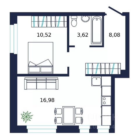 Продаётся 1к квартира в Тюмени, Калининский округ города, район Дом Обороны, ул. Военная, д. 21.