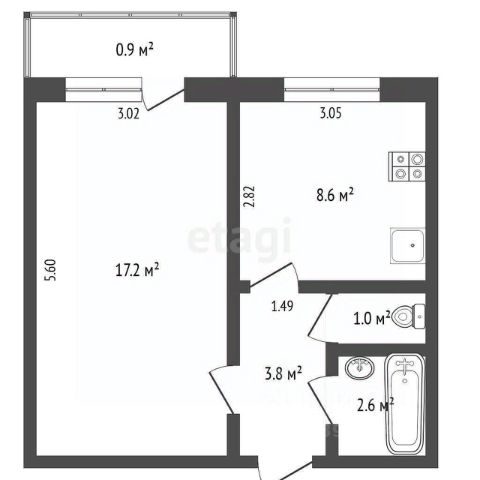Большая кухня-гостиная с двумя окнами, здесь можно принимать гостей. Изолированная спальня с выходом на балкон и совмещенный санузел. В санузле установлены фильтры очистки воды и бойлер.
