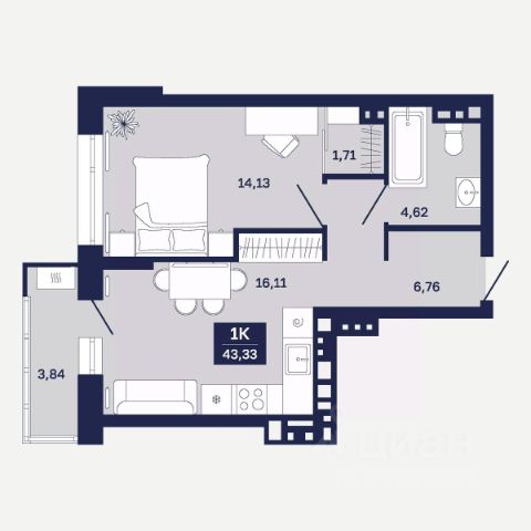 • ✓ В базе Циан 7 1-комнатных квартир на 6 этаже в микрорайоне Затюменка в городе Тюмень