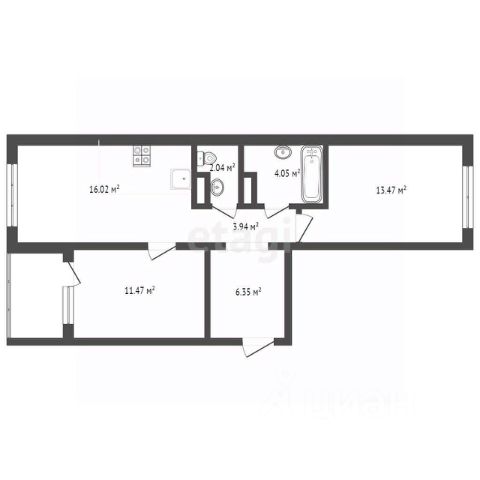 Функциональная планировка: кухня 11 м² с выходом на большую лоджию, просторная прихожая, удобная комната правильной формы, современный санузел.