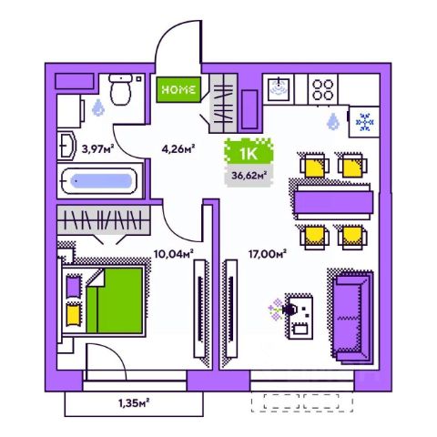Стильная, современная 1-комнатная квартира с дизайнерским ремонтом в настоящем кирпичном доме 2009 г. постройки, находящемся в тихом уголке делового центра Тюмени, в самом близком к центру районе - Дом Обороны!