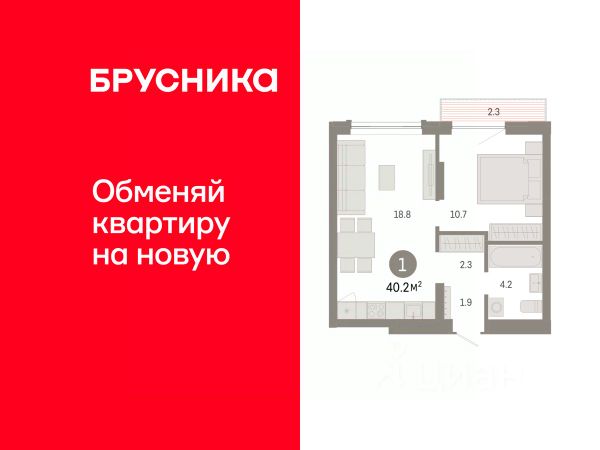 Однокомнатная квартира с предчистовой отделкой в ЖК "Прео" на 7 этаже. Общая площадь: 39.16 кв.м., жилая: 11.57 кв.м., площадь просторной кухни-столовой: 18.89 кв.м. Все окна выходят на одну сторону. В квартире один балкон, один совмещенный санузел. Высота потолков 2.7 м.