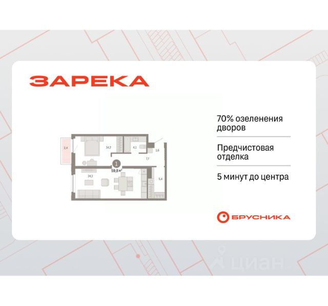 Квартира в счёт первоначального взноса по программе обмена. Информация по телефону, мы вам все подробно расскажем! Продается 1-комн. квартира от застройщика с предчистовой отделкой в ЖК "Зарека" на 7 этаже. Общая площадь: 52.62 кв.м., жилая: 11.8 кв.м., площадь просторной кухни-гостиной: 23.4 кв.м. Все окна выходят на одну сторону. В квартире два балкона, один совмещенный санузел. Высота потолков 2.7 м. Дом монолитный, многоподъездный, переменной этажности, от 6 до 16 этажей. Квартира находится в 1-й секции высотой 16 этажей в корпусе 5-2. На этаже 8 квартир. В подъезде 1 пассажирский и 1 грузовой лифт. Окончание строительства - 4 квартал 2026 года. Оформление сделки по договору долевого участия. Квартира с кухней-гостиной и одной спальней в жилом районе "Зарека". Особенности планировки: гардеробная, предчистовая отделка, балкон. квартиры в нашей базе: ЗРК05.2-Ж1.7.7. Проект На планировочную структуру "Зареки" повлияла близость к автомобильному мосту Челюскинцев. Мы расположили жилые здания так, чтобы они постепенно удалялись от проезжей части. Приём напоминает лесенку: чем сильнее мост возвышается над участком застройки, тем дальше по отношению к нему стоят дома. Этот ступенчатый сдвиг позволил нам сформировать буфер между кварталами и оживлённой магистралью. Мы намерены высадить здесь высокие деревья и создать дополнительную защиту от дорожных шума и пыли. В границах нашего участка мы намерены разместить школу и два встроенных детских сада на 135 и 150 мест. Общественные пространства С севера на юг территорию будет пронизывать пешеходный бульвар. Мы мыслим это общественное пространство как главный центр притяжения. На нём будут сосредоточены основные детские игровые и спортивные зоны, места для встреч и спокойного отдыха. Он также сыграет роль мостика, ведущего к другим нашим проектам — "Европейскому кварталу" и "Дому у озера". Одна из базовых идей мастер-плана касается береговой линии. Сегодня озеленение этой территории носит стихииныи характер, а прямому доступу к Туре препятствует дамба. Мы хотим благоустроить пространства у воды и открыть их для людей. Архитекторы спроектировали систему многоярусных троп и спусков к реке, смотровые площадки и места для активного отдыха и пикников. #zwFDEC
