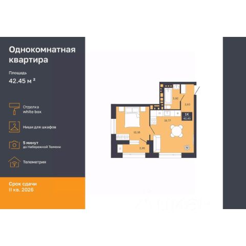 Новая квартира в ЖК "Авторский" напрямую от федерального застройщика "Страна Девелопмент". Продается 1комнатная квартира на 7 этаже от застройщика Страна Девелопмент. Площадь квартиры 33,25 кв. м. Жилой комплекс "Авторский" — квартал для авторов своей жизни от федерального застройщика "Страна Девелопмент" вблизи исторического центра — до Моста Влюблённых 4 минуты на авто, а ещё рядом ведущие вузы Тюмени. ПРЕИМУЩЕСТВА - Тематический бульвар объединяет дома и закрытые дворы квартала в единую экосистему: зелень, перголы для отдыха, детские и спортивные площадки. По вечерам бульвар преображается: освещение создаёт уютную атмосферу. - Новый детский сад рядом, который появится в 2026 году прямо в одном из корпусов комплекса. В нём выделено 150 мест для малышей. - Во дворах нет машин, шума, выхлопных газов и посторонних людей. Всё пространство разделено на зоны по интересам и возрастам. Для детей — игровые площадки из эко-материалов и мягкая защита от падений. Для взрослых — зоны отдыха, воркаут-площадки и тропинки для неспешных прогулок. ОТДЕЛКА Квартиры сдаются с предчистовой отделкой: произведена разводка электричества и отопления, выполнена стяжка пола, стены выровнены "под маяк", установлены розетки, выключатели и радиаторы. ДИЗАЙНЕРСКАЯ ОТДЕЛКА При покупке квартиры в ЖК "Авторский" можно включить стоимость ремонта в ипотеку. Пять вариантов на выбор: хлопковая нить, серый шторм, белый камень, шалфей, голубой вереск. СПОСОБЫ ПОКУПКИ Сотрудники "Страна Девелопмент" будут сопровождать вас на каждом этапе сделки, помогут получить одобрение по ипотеке или снизить ежемесячный платеж. - ипотека - рассрочка - с использованием материнского капитала -100% оплата наличными Цены на квартиры указаны без учета скидок. На консультации менеджер подскажет, какие акции действуют, и как получить одобрение по ипотеке с низкой ставкой.