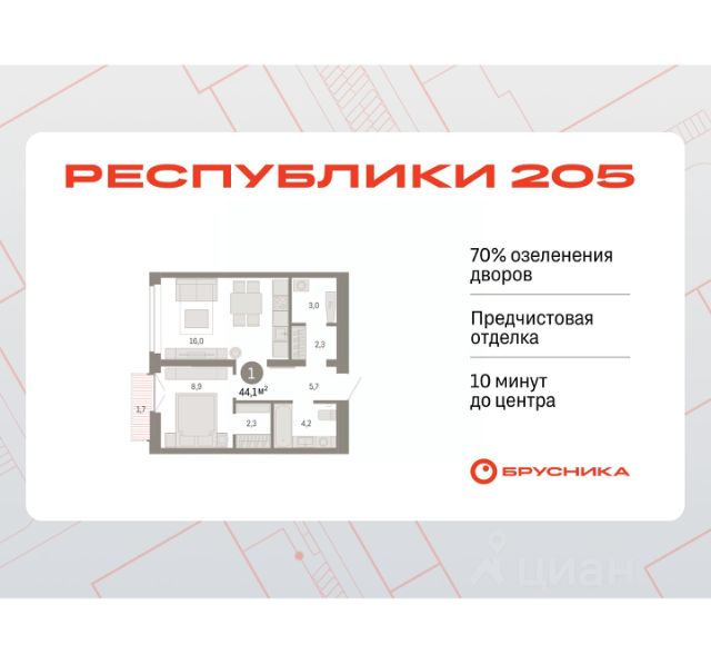 Эксклюзивные ипотечные условия. Обмен квартиры на новую. Предложение от застройщика. Квартира в рассрочку без процентов от застройщика. Дом будет сдан в 4 квартале 2025 года. Квартира в счёт первоначального взноса по программе обмена. Звоните, наши менеджеры вам все расскажут! Просторная 1-комн. квартира с предчистовой отделкой в ЖК "Республики 205" на 7 этаже. Общая площадь: 53.59 кв.м., жилая: 38.1 кв.м., площадь кухни: 5.2 кв.м. Все окна выходят на одну сторону. В квартире один совмещенный санузел. Высота потолков 2.6 м. Купить квартиру можно с помощью программ покупки от застройщика Брусника: - ипотека по эксклюзивной ставке с помощью в получении положительного кредитного решения через сервис ипотечный брокер; - квартиры в рассрочку без процентов от застройщика Брусника; - обмен квартиры на новую. Получить одобрение ипотеки или рассрочку, а также осуществить обмен квартир можно онлайн. Дом монолитный, многоподъездный, переменной этажности, от 9 до 17 этажей. Квартира находится в 1-й секции высотой 17 этажей в корпусе 1. На этаже 7 квартир. В подъезде 1 пассажирский и 1 грузовой лифт. Начало строительства - 2 квартал 2023 года. Окончание строительства - 4 квартал 2025 года. Оформление сделки по договору долевого участия. Район Проект расположен в границах улиц Пермякова, Энергетиков, Воровского и Республики. До центра города — 10 минут на машине. Рядом — автомобильная развязка на пересечении улиц Пермякова и Республики. В шаговой доступности есть школы, детские сады, поликлиники, крупный торговый центр, автовокзал и несколько скверов. Проект "Республики 205" — это проект комплексного развития территории, уникальный по своему наполнению. Переосмысляя бывшую территорию завода медицинского оборудования, мы создадим новое место силы — микрорайон, насыщенный деловой, развлекательной, рекреационной, игровой, образовательной и медицинской инфраструктурой. До каждого полезного сервиса здесь можно будет дойти за 15 минут. Локальными центрами "Республики 205" будут общественные пространства — скверы, парки, бульвары и площади. В границах нашего участка мы намерены разместить школу, рассчитанную на 1550 учеников, два детских сада на 300 мест и встроенный детский сад на 100 мест. В одном из цехов бывшего завода расположится креативный кластер "Кузница". Он станет площадкой для нескольких институций — галереи, лектория, книжного магазина-библиотеки, кинобара и точек креативного pop-up-ритейла. Пешеходные бульвары внутри района соединят между собой улицу ресторанов, детские и спортивные площадки, событийную площадь и летний кинотеатр. Идентификатор квартиры по базе застройщика: МЕД01-01-1-1. #z62IAI