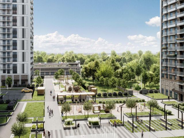 Мы хотели создать проект, который бы органично встроился в окружение и соответствовал запросам горожан к центру. Поэтому утвердили сомасштабную человеку высоту в 7-9 этажей и спреоктировали внутри квартала пешеходную аллея, которая связывает дома с контекстом и делает квартал проницаемой.
