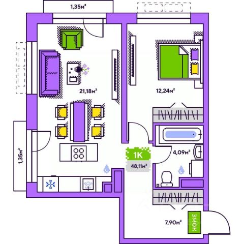 Продам квартиру формата 1+ / кухня-гостиная и спальная комната/ в доме комфорт-класса, который расположен в районе Дома обороны, пять минут до набережной и центра Тюмени. Квартира светлая с удобной планировкой : есть просторная прихожая, в которой организована гардеробная комната, кухня-гостиная 20 кв.м, спальная комната, балкон, большой совмещенный санузел.