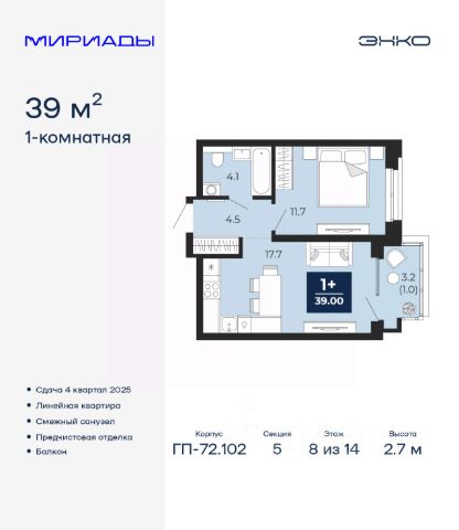 Эксклюзивные ипотечные условия. Квартира в рассрочку без процентов от застройщика. Дом будет сдан в 4 квартале 2025 года. Звоните, наши менеджеры вам все расскажут! Однокомнатная квартира с предчистовой отделкой в ЖК "Республики 205" на 8 этаже. Общая площадь: 84.02 кв.м., жилая: 40 кв.м., площадь просторной кухни-гостиной: 10 кв.м. Все окна выходят на одну сторону. В квартире один балкон, один совмещенный санузел. Высота потолков 2.6 м. Купить квартиру можно с помощью программ покупки от застройщика Брусника: - ипотека по эксклюзивной ставке с помощью в получении положительного кредитного решения через сервис ипотечный брокер; - квартиры в рассрочку без процентов от застройщика Брусника; - обмен квартиры на новую. Получить одобрение ипотеки или рассрочку, а также осуществить обмен квартир можно онлайн. Дом монолитный, многоподъездный, переменной этажности, от 9 до 17 этажей. Квартира находится в 1-й секции высотой 17 этажей в корпусе 1. На этаже 7 квартир. В подъезде 1 пассажирский и 1 грузовой лифт. Начало строительства - 2 квартал 2023 года. Окончание строительства - 4 квартал 2025 года. Оформление сделки по договору долевого участия. Район Проект расположен в границах улиц Пермякова, Энергетиков, Воровского и Республики. До центра города — 10 минут на машине. Рядом — автомобильная развязка на пересечении улиц Пермякова и Республики. В шаговой доступности есть школы, детские сады, поликлиники, крупный торговый центр, автовокзал и несколько скверов. Проект "Республики 205" — это проект комплексного развития территории, уникальный по своему наполнению. Переосмысляя бывшую территорию завода медицинского оборудования, мы создадим новое место силы — микрорайон, насыщенный деловой, развлекательной, рекреационной, игровой, образовательной и медицинской инфраструктурой. До каждого полезного сервиса здесь можно будет дойти за 15 минут. Локальными центрами "Республики 205" будут общественные пространства — скверы, парки, бульвары и площади. В границах нашего участка мы намерены разместить школу, рассчитанную на 1550 учеников, два детских сада на 300 мест и встроенный детский сад на 100 мест. В одном из цехов бывшего завода расположится креативный кластер "Кузница". Он станет площадкой для нескольких институций — галереи, лектория, книжного магазина-библиотеки, кинобара и точек креативного pop-up-ритейла. Пешеходные бульвары внутри района соединят между собой улицу ресторанов, детские и спортивные площадки, событийную площадь и летний кинотеатр. Идентификатор квартиры по базе застройщика: МЕД01-01-1-1. #Zi9l91