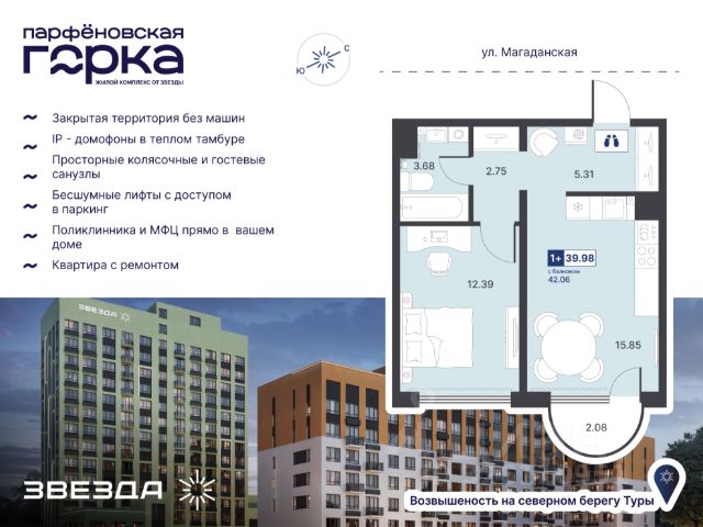 Дом монолитный, черырехподъездный, переменной этажности, от 14 до 21 этажей. Квартира находится в 1-й секции высотой 21 этаж в корпусе 211. На этаже 8 квартир. В подъезде 1 пассажирский и 1 грузовой лифт. Окончание строительства - 4 квартал 2026 года. Оформление сделки по договору долевого участия.