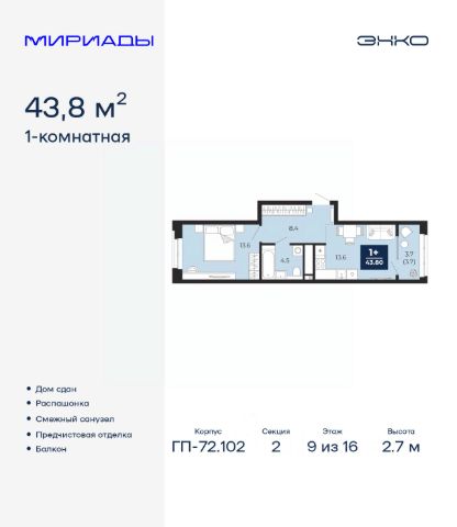 Просторная 1-комн. квартира с предчистовой отделкой в ЖК "Республики 205" на 9 этаже. Общая площадь: 35.47 кв.м., жилая: 9 кв.м., площадь просторной кухни-гостиной: 16 кв.м. Все окна выходят на одну сторону. В квартире один балкон, один совмещенный санузел. Высота потолков 2.7 м. Купить квартиру можно с помощью программ покупки от застройщика Брусника: - ипотека по эксклюзивной ставке с помощью в получении положительного кредитного решения через сервис ипотечный брокер; - квартиры в рассрочку без процентов от застройщика Брусника; - обмен квартиры на новую. Получить одобрение ипотеки или рассрочку, а также осуществить обмен квартир можно онлайн. Дом монолитный, многоподъездный, переменной этажности, от 7 до 16 этажей. Квартира находится в 1-й секции высотой 9 этажей в корпусе 2. На этаже 10 квартир. В подъезде 1 грузовой лифт. Начало строительства - 1 квартал 2024 года. Окончание строительства - 1 квартал 2026 года. Оформление сделки по договору долевого участия. Район Проект расположен в границах улиц Пермякова, Энергетиков, Воровского и Республики. До центра города — 10 минут на машине. Рядом — автомобильная развязка на пересечении улиц Пермякова и Республики. В шаговой доступности есть школы, детские сады, поликлиники, крупный торговый центр, автовокзал и несколько скверов. Проект "Республики 205" — это проект комплексного развития территории, уникальный по своему наполнению. Переосмысляя бывшую территорию завода медицинского оборудования, мы создадим новое место силы — микрорайон, насыщенный деловой, развлекательной, рекреационной, игровой, образовательной и медицинской инфраструктурой. До каждого полезного сервиса здесь можно будет дойти за 15 минут. Локальными центрами "Республики 205" будут общественные пространства — скверы, парки, бульвары и площади. В границах нашего участка мы намерены разместить школу, рассчитанную на 1550 учеников, два детских сада на 300 мест и встроенный детский сад на 100 мест. В одном из цехов бывшего завода расположится креативный кластер "Кузница". Он станет площадкой для нескольких институций — галереи, лектория, книжного магазина-библиотеки, кинобара и точек креативного pop-up-ритейла. Пешеходные бульвары внутри района соединят между собой улицу ресторанов, детские и спортивные площадки, событийную площадь и летний кинотеатр. Идентификатор квартиры по базе застройщика: РСП-02-1-1. #Zs89gA