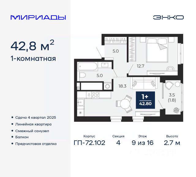 Продается 1-комн. квартира в ЖК "Беринг" на 9 этаже. Квартира без отделки, полностью готова к ремонту. Общая площадь: 39.13 кв.м., жилая: 14.5 кв.м., площадь просторной кухни-столовой: 10.57 кв.м. Все окна выходят на одну сторону. В квартире одна лоджия, один совмещенный санузел. Высота потолков 2.75 м. Дом монолитный, многоподъездный, переменной этажности, от 9 до 22 этажей. Квартира находится в 73.5-й секции высотой 21 этаж в корпусе ГП-73. На этаже 6 квартир. В подъезде 1 пассажирский и 1 грузовой лифт. Окончание строительства - 4 квартал 2025 года. Оформление сделки по договору долевого участия. Подобно знаменитому исследователю, мы чувствуем себя первооткрывателями этой локации. Хотим показать новую суть места, сформировать для вас жизненный опыт, которого ещё не было. Беринг — район зелёного цвета. Беринг — район, который откроется вам с другой стороны. Впечатлит новым уровнем комфорта и качеством жизни. Беринг — открытие на карте города. Первый квартал расположен в районе Тура, в границах улиц: Камчатская Западносибирская Энтузиастов. Вокруг уже есть всё для того, чтобы ежедневная рутина была лишь частью жизни и не доставляла дискомфорта. Школы и детские сады, магазины и аптеки, поликлиника, места для семейного отдыха, пеших и велопрогулок, и даже рыбалки. Масштабное озеленение дворов — визитная карточка ЭНКО и ваш оазис спокойствия, чтобы отвлечься от повседневности. Раскидистые деревья, кустарники, травы и цветы — осталось остановиться, вдохнуть и расслабиться, глядя на эту природную красоту. Стилистика подъездов продолжает концепцию Беринга, вдохновлённого Камчаткой: сдержанный, но при этом впечатляющий дизайн соседствует с удобством и функциональностью. #2Us5VS