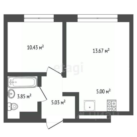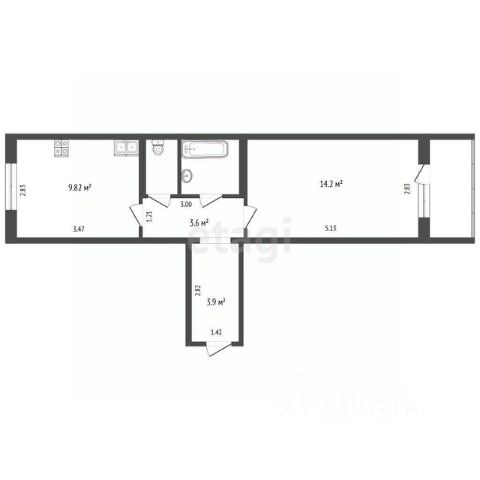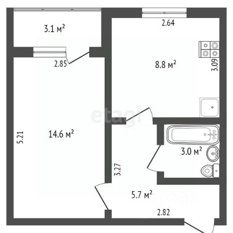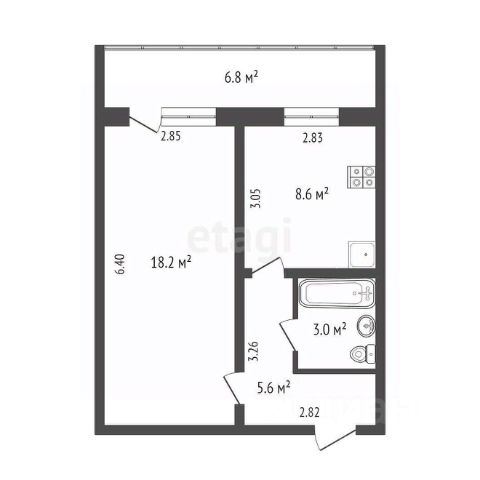 Отличная планировка - просторная кухня-гостиная и стильная спальня.