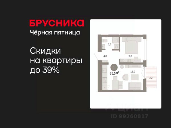 Квартира в счёт первоначального взноса по программе обмена. По всем вопросам звоните в офис продаж, мы вам все подробно расскажем! Однокомнатная квартира с предчистовой отделкой в ЖК "Республики 205" на 9 этаже. Общая площадь: 35.47 кв.м., жилая: 9 кв.м., площадь просторной кухни-гостиной: 16 кв.м. Все окна выходят на одну сторону. В квартире один балкон, один совмещенный санузел. Высота потолков 2.7 м. Купить квартиру можно с помощью программ покупки от застройщика Брусника: - ипотека по эксклюзивной ставке с помощью в получении положительного кредитного решения через сервис ипотечный брокер; - квартиры в рассрочку без процентов от застройщика Брусника; - обмен квартиры на новую. Получить одобрение ипотеки или рассрочку, а также осуществить обмен квартир можно онлайн. Дом монолитный, многоподъездный, переменной этажности, от 7 до 16 этажей. Квартира находится в 1-й секции высотой 9 этажей в корпусе 2. На этаже 10 квартир. В подъезде 1 грузовой лифт. Начало строительства - 1 квартал 2024 года. Окончание строительства - 1 квартал 2026 года. Оформление сделки по договору долевого участия. Район Проект расположен в границах улиц Пермякова, Энергетиков, Воровского и Республики. До центра города — 10 минут на машине. Рядом — автомобильная развязка на пересечении улиц Пермякова и Республики. В шаговой доступности есть школы, детские сады, поликлиники, крупный торговый центр, автовокзал и несколько скверов. Проект "Республики 205" — это проект комплексного развития территории, уникальный по своему наполнению. Переосмысляя бывшую территорию завода медицинского оборудования, мы создадим новое место силы — микрорайон, насыщенный деловой, развлекательной, рекреационной, игровой, образовательной и медицинской инфраструктурой. До каждого полезного сервиса здесь можно будет дойти за 15 минут. Локальными центрами "Республики 205" будут общественные пространства — скверы, парки, бульвары и площади. В границах нашего участка мы намерены разместить школу, рассчитанную на 1550 учеников, два детских сада на 300 мест и встроенный детский сад на 100 мест. В одном из цехов бывшего завода расположится креативный кластер "Кузница". Он станет площадкой для нескольких институций — галереи, лектория, книжного магазина-библиотеки, кинобара и точек креативного pop-up-ритейла. Пешеходные бульвары внутри района соединят между собой улицу ресторанов, детские и спортивные площадки, событийную площадь и летний кинотеатр. Идентификатор квартиры по базе застройщика: РСП-02-1-1. #2589a2 Купить 1-комнатную квартиру в ипотеку в округе Ленинский в городе Тюмень.