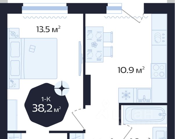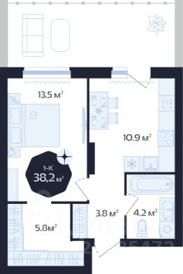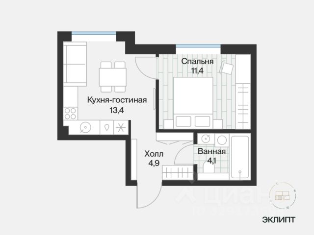 Продаётся квартира площадью 36.7 м2 в жилом комплексе "Айрис".