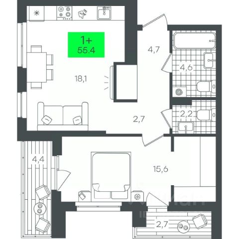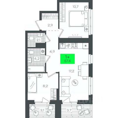 • ✓ В базе Циан 1,3 тыс. 1-комнатных квартир в кирпично-монолитном доме в округе Калининский в городе Тюмень