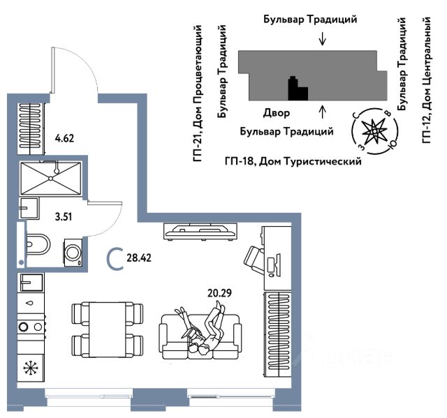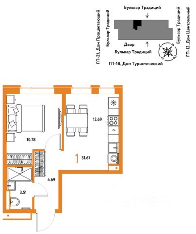 Объявление от застройщика Страна Девелопмент. Покупка квартиры защищена банком. Продается 1комнатная квартира на 13 этаже от застройщика Страна Девелопмент. Площадь квартиры 24,67 кв. м. О ПРOЕКТЕ Mикpорайон "Домaшний" — этo 6 очередей стpоитeльcтвa, 24 дома пеpемeннoй этажнoсти. Каждый дом уникальный. Внутри микрорайона появится огромный пешеходный бульвар — бульвар Традиций. Центром притяжения станут открытые пространства для отдыха жителей и гостей микрорайона, которые легко меняются под сезонные сценарии отдыха: новогодняя елка, ярмарки, кинопоказы и т.д. У каждого дома обустроен приватный двор с зонами для активного и спокойного отдыха. В активной зоне детские разновозрастные площадки с горками, песочницами и качелями, воркаут-зоны. В спокойной — скамейки, мини-амфитеатры, закрытые перголы. Уютной атмосферу сделает обильное озеленение и освещение "домашними" торшерами. ОТДЕЛКА Квартиры сдаются с предчистовой отделкой. Все грязные работы выполнены: произведена разводка электричества и отопления; выполнена стяжка пола; стены выровнены "под маяк". В квартире установлены розетки, выключатели и радиаторы. На входе — надежная стальная дверь. Вам остается только выбрать материалы и начать ремонт Доступна опция "Ремонт от застройщика". Стоимость можно включить в ипотеку. КУХНЯ С ТЕХНИКОЙ Теперь дополнительно к ремонту можно заказать кухню со встроенной техникой. Эргономику и функциональное наполнение разработали под каждую планировку. ПОЛНАЯ МЕБЛИРОВКА Больше не нужно тратить время даже на подбор, доставку и сборку мебели.Вы можете включить в стоимость квартиры с ремонтом полную меблировку. Что входит в меблировку? - Кухня с техникой и сантехникой - Диван - Кровать - Шкаф в спальне - Шкаф в прихожей