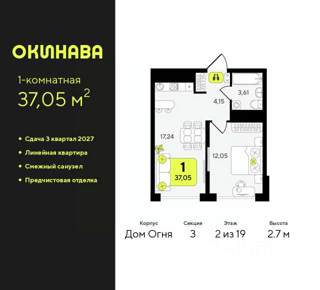 • ✓ В базе Циан 1 1-комнатных квартир в кирпично-монолитном доме на улице Евгения Войнова в городе Тюмень