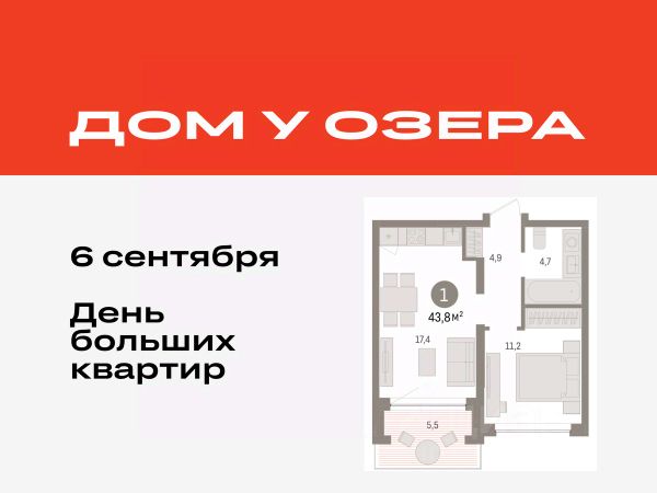 Просторная 1-комн. квартира с предчистовой отделкой в ЖК "Дом у озера" на 2 этаже. Общая площадь: 43.76 кв.м., жилая: 11.2 кв.м., площадь просторной кухни-гостиной: 17.4 кв.м. Все окна выходят на одну сторону. В квартире одна лоджия, один совмещенный санузел. Высота потолков 2.7 м.