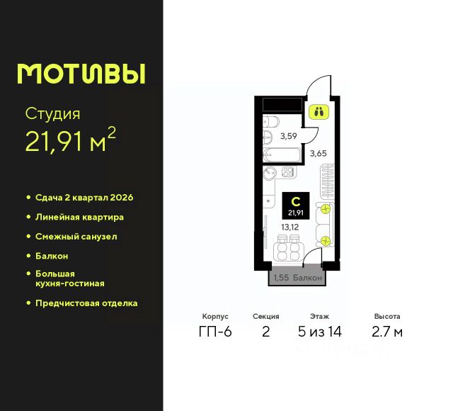 Дом монолитный, черырехподъездный, переменной этажности, от 14 до 21 этажей. Квартира находится во 2-й секции высотой 21 этаж в корпусе 211. На этаже 10 квартир. В подъезде 1 пассажирский и 1 грузовой лифт. Окончание строительства - 4 квартал 2026 года. Оформление сделки по договору долевого участия.