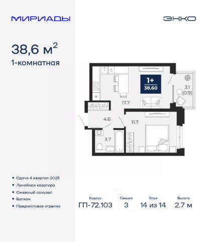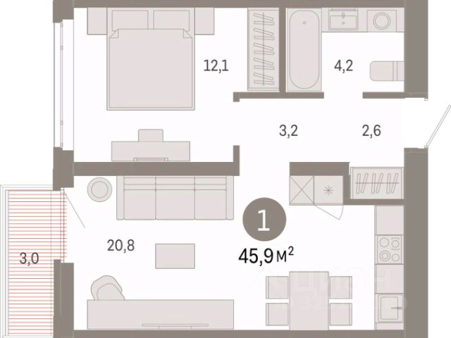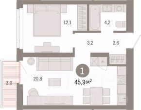 Продается однокомнатная квартира с предчистовой отделкой в ЖК "Республики 205" на 7 этаже. Общая площадь: 44.84 кв.м., жилая: 9.9 кв.м., площадь просторной кухни-гостиной: 20.9 кв.м. Все окна выходят на одну сторону. В квартире один балкон, один совмещенный санузел. Высота потолков 2.7 м. Купить квартиру можно с помощью программ покупки от застройщика Брусника: - ипотека по эксклюзивной ставке с помощью в получении положительного кредитного решения через сервис ипотечный брокер; - квартиры в рассрочку без процентов от застройщика Брусника; - обмен квартиры на новую. Получить одобрение ипотеки или рассрочку, а также осуществить обмен квартир можно онлайн. Дом монолитный, многоподъездный, переменной этажности, от 7 до 16 этажей. Квартира находится в 7-й секции высотой 7 этажей в корпусе 2. На этаже 6 квартир. В подъезде 1 грузовой лифт. Начало строительства - 1 квартал 2024 года. Окончание строительства - 1 квартал 2026 года. Оформление сделки по договору долевого участия. Район Проект расположен в границах улиц Пермякова, Энергетиков, Воровского и Республики. До центра города — 10 минут на машине. Рядом — автомобильная развязка на пересечении улиц Пермякова и Республики. В шаговой доступности есть школы, детские сады, поликлиники, крупный торговый центр, автовокзал и несколько скверов. Проект "Республики 205" — это проект комплексного развития территории, уникальный по своему наполнению. Переосмысляя бывшую территорию завода медицинского оборудования, мы создадим новое место силы — микрорайон, насыщенный деловой, развлекательной, рекреационной, игровой, образовательной и медицинской инфраструктурой. До каждого полезного сервиса здесь можно будет дойти за 15 минут. Локальными центрами "Республики 205" будут общественные пространства — скверы, парки, бульвары и площади. В границах нашего участка мы намерены разместить школу, рассчитанную на 1550 учеников, два детских сада на 300 мест и встроенный детский сад на 100 мест. В одном из цехов бывшего завода расположится креативный кластер "Кузница". Он станет площадкой для нескольких институций — галереи, лектория, книжного магазина-библиотеки, кинобара и точек креативного pop-up-ритейла. Пешеходные бульвары внутри района соединят между собой улицу ресторанов, детские и спортивные площадки, событийную площадь и летний кинотеатр. Идентификатор квартиры по базе застройщика: РСП-02-7-7. #25SCf4