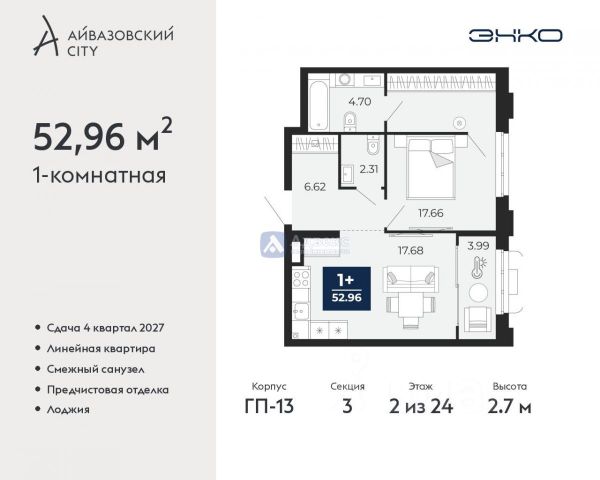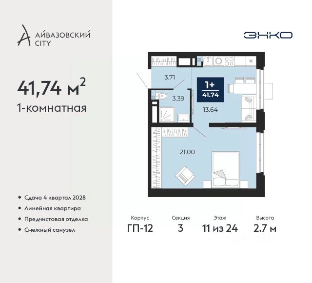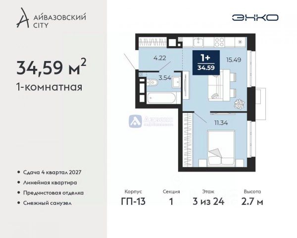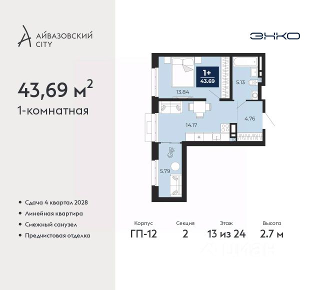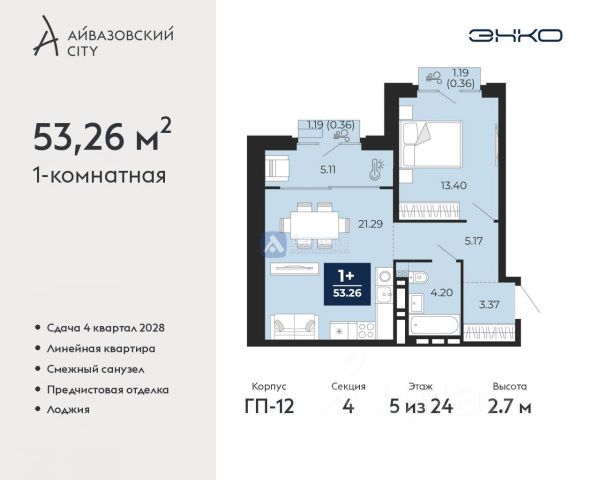 Уникальная квартира формата 3 "+" (кухня-гостиная + 3 спальни) в ЖК Айвазовский City с панорамным видом на город с 23-го этажа!