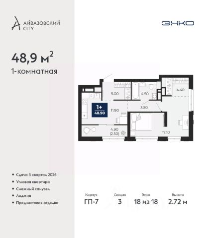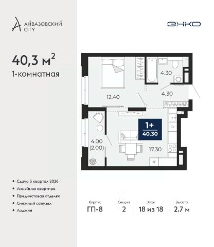 Однокомнатная квартира с предчистовой отделкой в ЖК "Айвазовский City" на 18 этаже. Общая площадь: 59.7 кв.м., жилая: 11.6 кв.м., площадь просторной кухни-столовой: 28.2 кв.м. Квартира угловая, очень светлая, естественная вентиляция при открытии окон. В квартире одна лоджия, один совмещенный санузел. Высота потолков 2.72 м. Дом монолитный, многоподъездный, переменной этажности, от 9 до 24 этажей. Квартира находится в 3-й секции высотой 18 этажей в корпусе ГП-7. На этаже 5 квартир. В подъезде 1 пассажирский и 2 грузовых лифта. Окончание строительства - 3 квартал 2026 года. Оформление сделки по договору долевого участия. Новый жилой район располагается в живописном месте на берегу Туры в центральной части города. Принципиально новое пространство для жизни в центре современного города для тех, чьи мечты сбываются, кто нацелен на постоянный рост, перемены к лучшему для себя и своих близких. Каждая деталь Айвазовский City вдохновляет и заряжает на новые свершения: авторская архитектура, сбалансированная продуманная инфраструктура, дизайнерские дворы со спортивными и детскими площадками, парковые зоны с фонтанами, водный канал, украшающий центральный прогулочный маршрут района и многое другое. В 2019 года проект стал лауреатом престижной премии Urban Awards 2019 в номинации "Лучший строящийся региональный жилой комплекс бизнес-класса". Главная особенность Айвазовский City - соседство разных архитектурных школ в рамках одного дома. Изысканная классика, выразительная эклектика и оригинальный модерн - жить в одном из таких домов настоящий повод для гордости. Айвазовский City это идеальное сочетание комфорта, технологий и развитой инфраструктуры. Вход в подъезд возможен с улицы и со двора. Отправляясь на работу или за покупками, жители могут выйти с внешней стороны дома, а для прогулки с ребенком со стороны двора. Экологически чистые материалы и энергосберегающие технологии, качественное освещение общественных зон, видеонаблюдение по всей территории жилого района (в том числе в подъездах, лифтах и в подземном паркинге), закрытые дворы с доступом только для жителей Айвазовский City. Часть домов в Айвазовский City будут оснащены подземным паркингом. Востребованный в нашем климатическом поясе формат хранения автомобилей защитит собственность владельца в любое время года. Аккредитация в банках: "Сбербанк России", ПАО Банк "ВТБ", ОАО "Альфа-Банк", ПАО "Газпромбанк", ПАО "Совкомбанк" и других. #zsFm9B