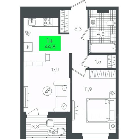 Продается 1-комн. квартира с предчистовой отделкой в ЖК "Прео" на 4 этаже. Общая площадь: 33.77 кв.м., жилая: 13.83 кв.м., площадь просторной кухни-столовой: 9.85 кв.м. Все окна выходят на одну сторону. В квартире одна лоджия, один совмещенный санузел. Высота потолков 2.7 м.