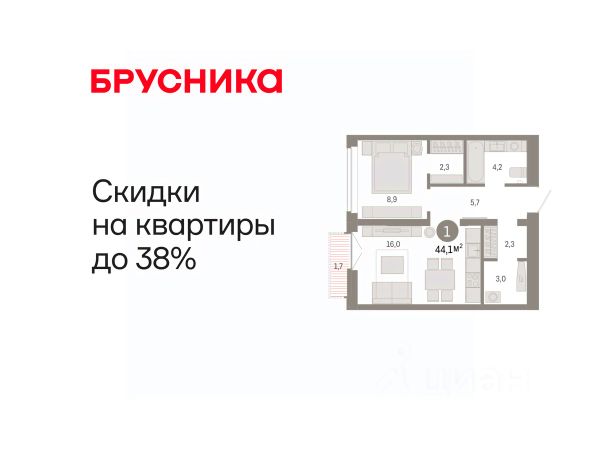 Квартира в счёт первоначального взноса по программе обмена. По всем вопросам обращайтесь в офис продаж, мы вам все подробно расскажем! Продается 1-комн. квартира с предчистовой отделкой в ЖК "Республики 205" на 9 этаже. Общая площадь: 35.47 кв.м., жилая: 9 кв.м., площадь просторной кухни-гостиной: 16 кв.м. Все окна выходят на одну сторону. В квартире один балкон, один совмещенный санузел. Высота потолков 2.7 м. Купить квартиру можно с помощью программ покупки от застройщика Брусника: - ипотека по эксклюзивной ставке с помощью в получении положительного кредитного решения через сервис ипотечный брокер; - квартиры в рассрочку без процентов от застройщика Брусника; - обмен квартиры на новую. Получить одобрение ипотеки или рассрочку, а также осуществить обмен квартир можно онлайн. Дом монолитный, многоподъездный, переменной этажности, от 7 до 16 этажей. Квартира находится в 1-й секции высотой 9 этажей в корпусе 2. На этаже 10 квартир. В подъезде 1 грузовой лифт. Начало строительства - 1 квартал 2024 года. Окончание строительства - 1 квартал 2026 года. Оформление сделки по договору долевого участия. Район Проект расположен в границах улиц Пермякова, Энергетиков, Воровского и Республики. До центра города — 10 минут на машине. Рядом — автомобильная развязка на пересечении улиц Пермякова и Республики. В шаговой доступности есть школы, детские сады, поликлиники, крупный торговый центр, автовокзал и несколько скверов. Проект "Республики 205" — это проект комплексного развития территории, уникальный по своему наполнению. Переосмысляя бывшую территорию завода медицинского оборудования, мы создадим новое место силы — микрорайон, насыщенный деловой, развлекательной, рекреационной, игровой, образовательной и медицинской инфраструктурой. До каждого полезного сервиса здесь можно будет дойти за 15 минут. Локальными центрами "Республики 205" будут общественные пространства — скверы, парки, бульвары и площади. В границах нашего участка мы намерены разместить школу, рассчитанную на 1550 учеников, два детских сада на 300 мест и встроенный детский сад на 100 мест. В одном из цехов бывшего завода расположится креативный кластер "Кузница". Он станет площадкой для нескольких институций — галереи, лектория, книжного магазина-библиотеки, кинобара и точек креативного pop-up-ритейла. Пешеходные бульвары внутри района соединят между собой улицу ресторанов, детские и спортивные площадки, событийную площадь и летний кинотеатр. Идентификатор квартиры по базе застройщика: РСП-02-1-1. #2s8gAz