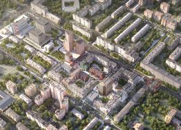 "1А Первомайская" — новый проект Брусники в самом центре Тюмени на пересечении главных улиц: Первомайской, Советской и Сакко. Квартал состоит из двух зданий с жилыми апартаментами и офисной галереи, которые связаны единым общественным пространством..