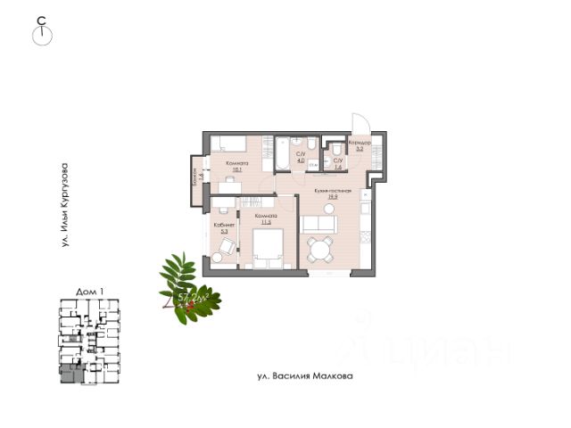 Продается 2-комн. квартира от застройщика с предчистовой отделкой в ЖК "Прео" на 2 этаже. Общая площадь: 63.68 кв.м., жилая: 26.74 кв.м., площадь просторной кухни-столовой: 18.04 кв.м. Комнаты изолированные, все окна выходят на одну сторону. В квартире одна лоджия, один совмещенный и один раздельный санузел. Высота потолков 2.7 м.